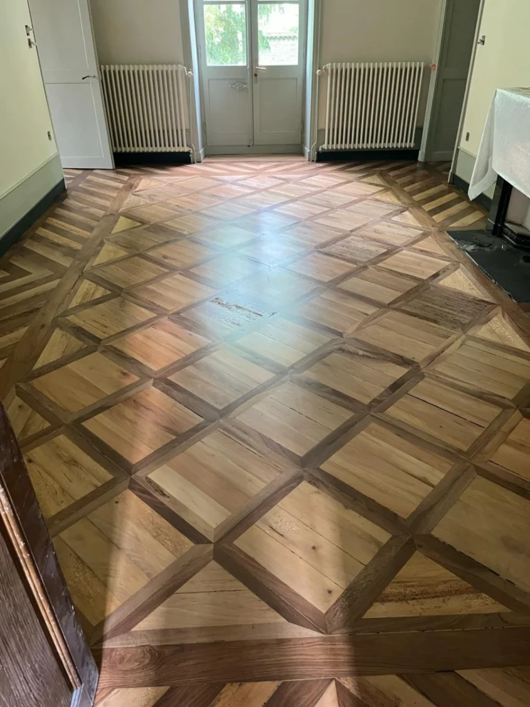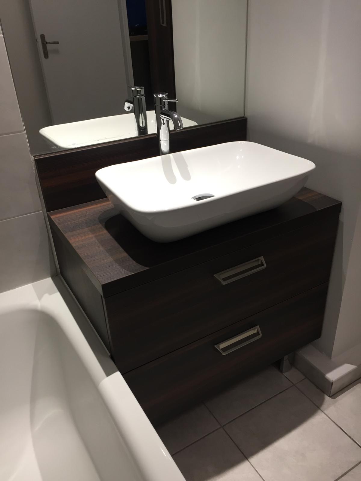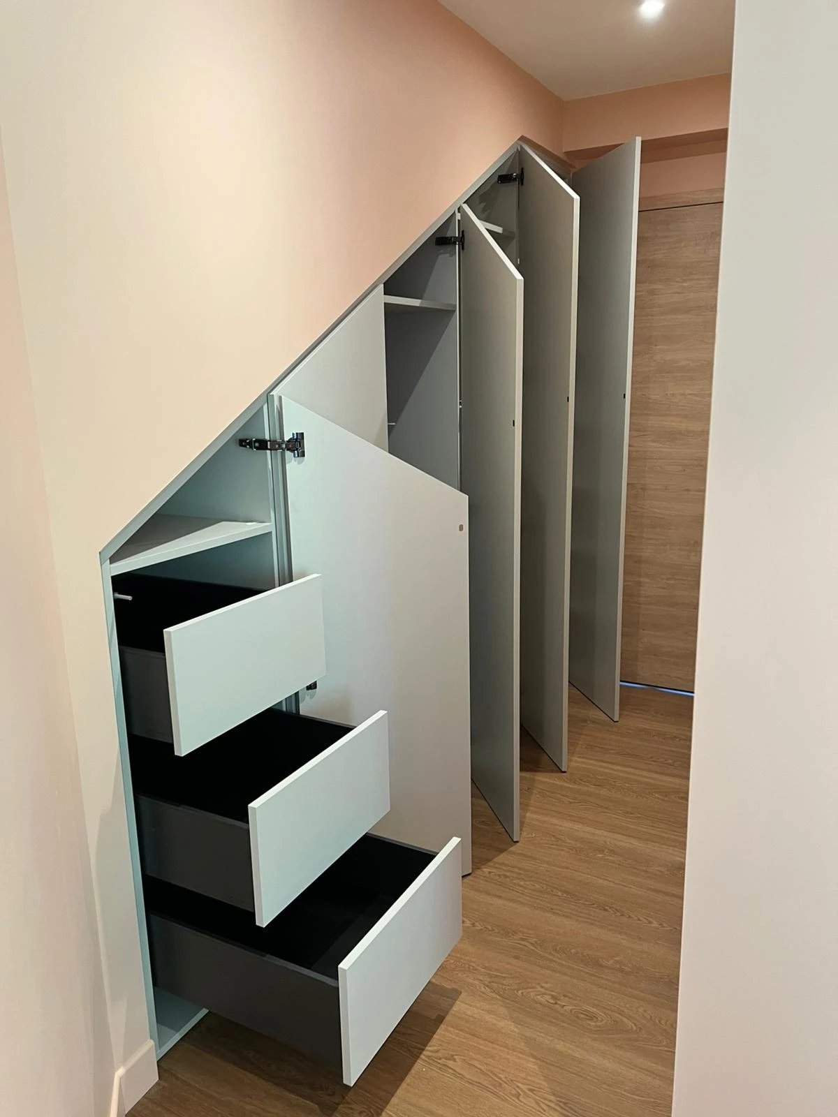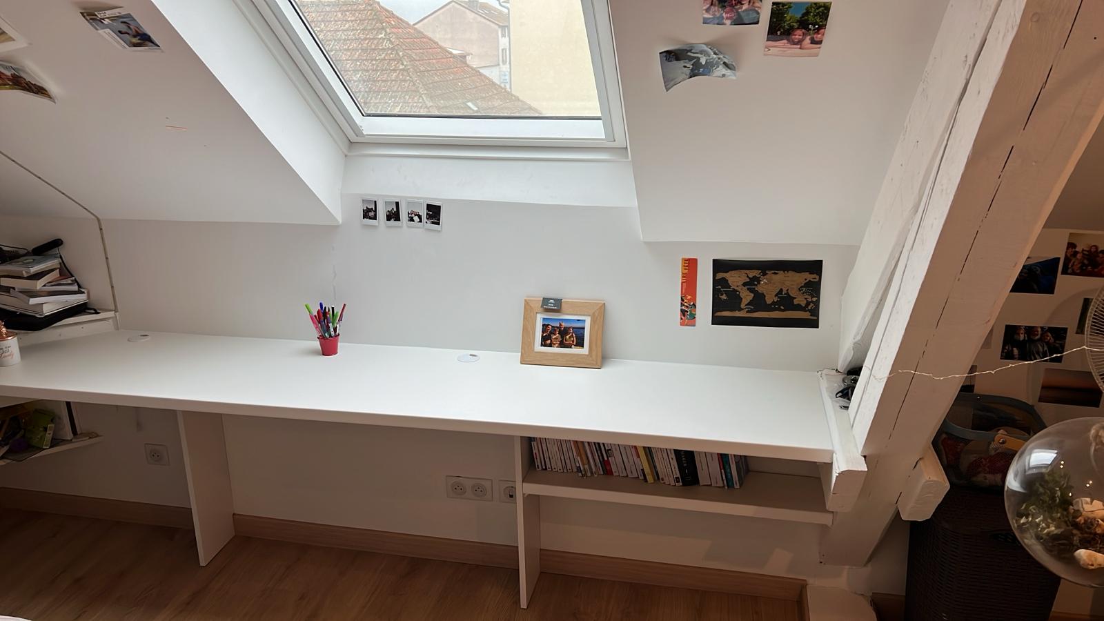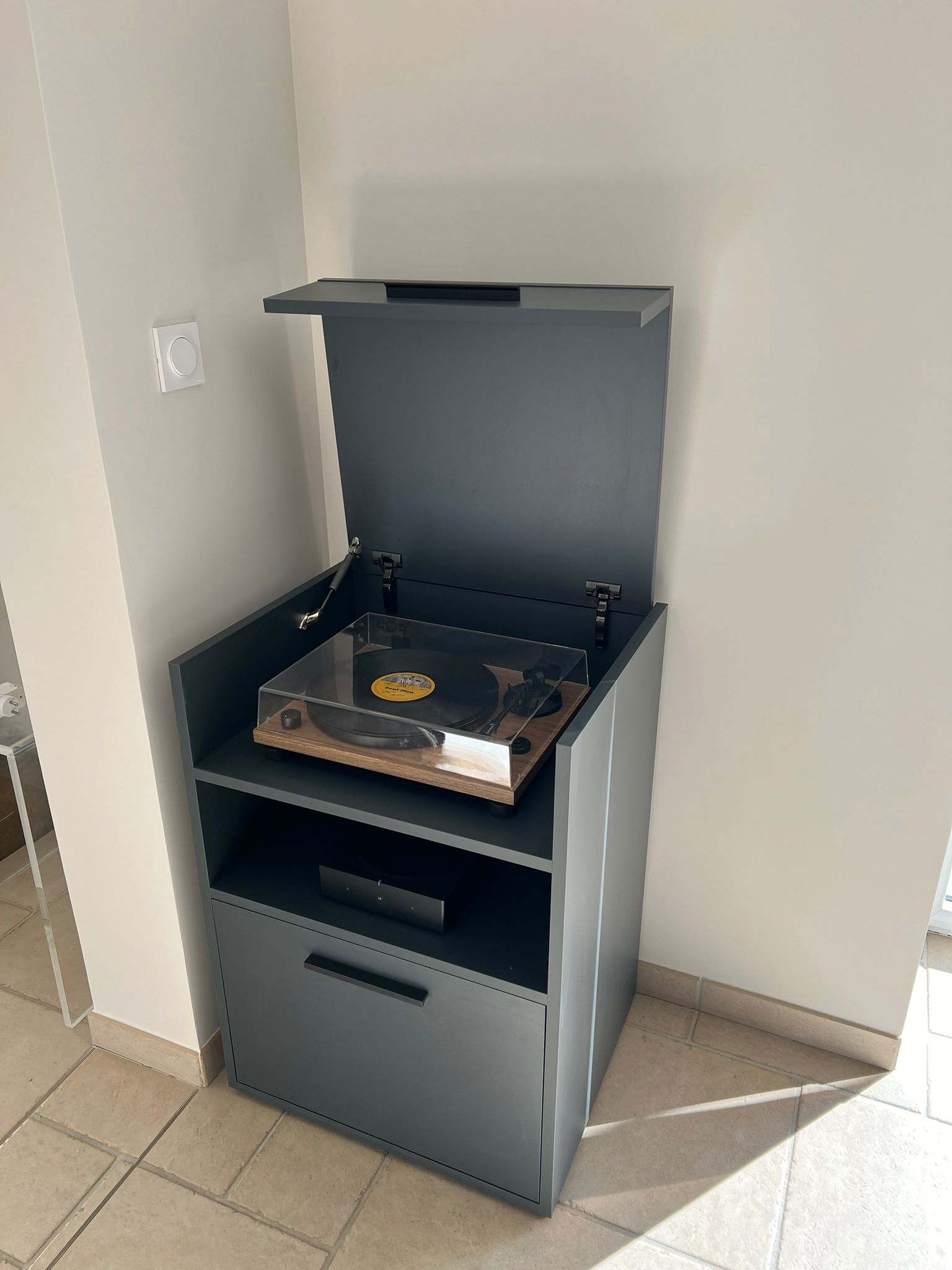 Conception d’un meuble suspendu sur mesure mêlant bois naturel et façades blanches texturées