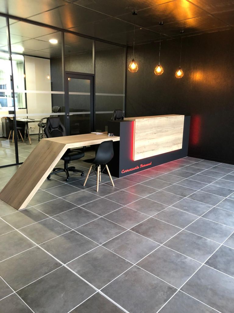 Création d’un espace bar design avec cave à vin intégrée et éclairage circulaire rétroéclairé
